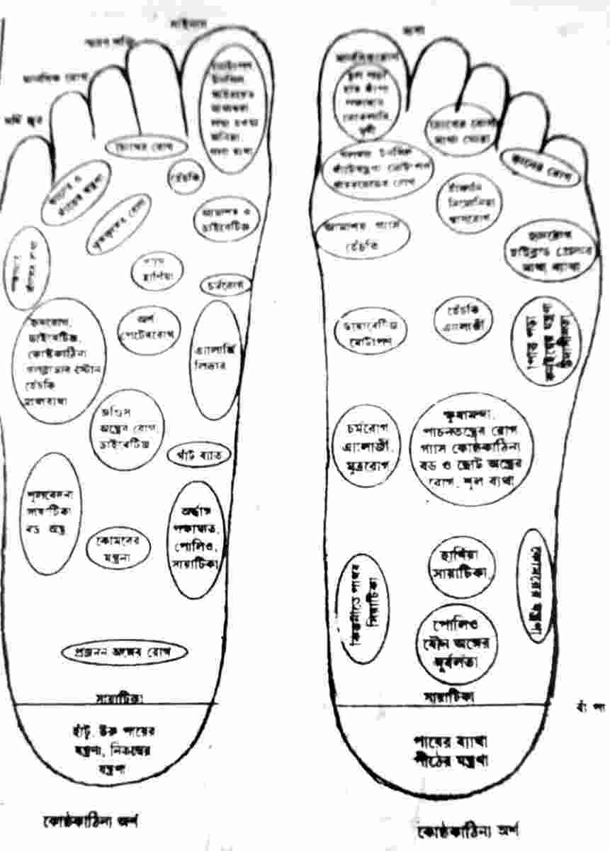 | পায়ে অবস্থিত প্রধান আকুপ্রেশার প্রতিবিম্ব কেন্দ্র |